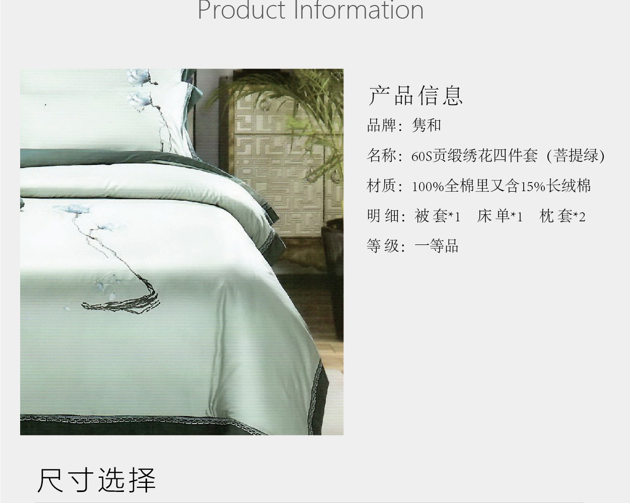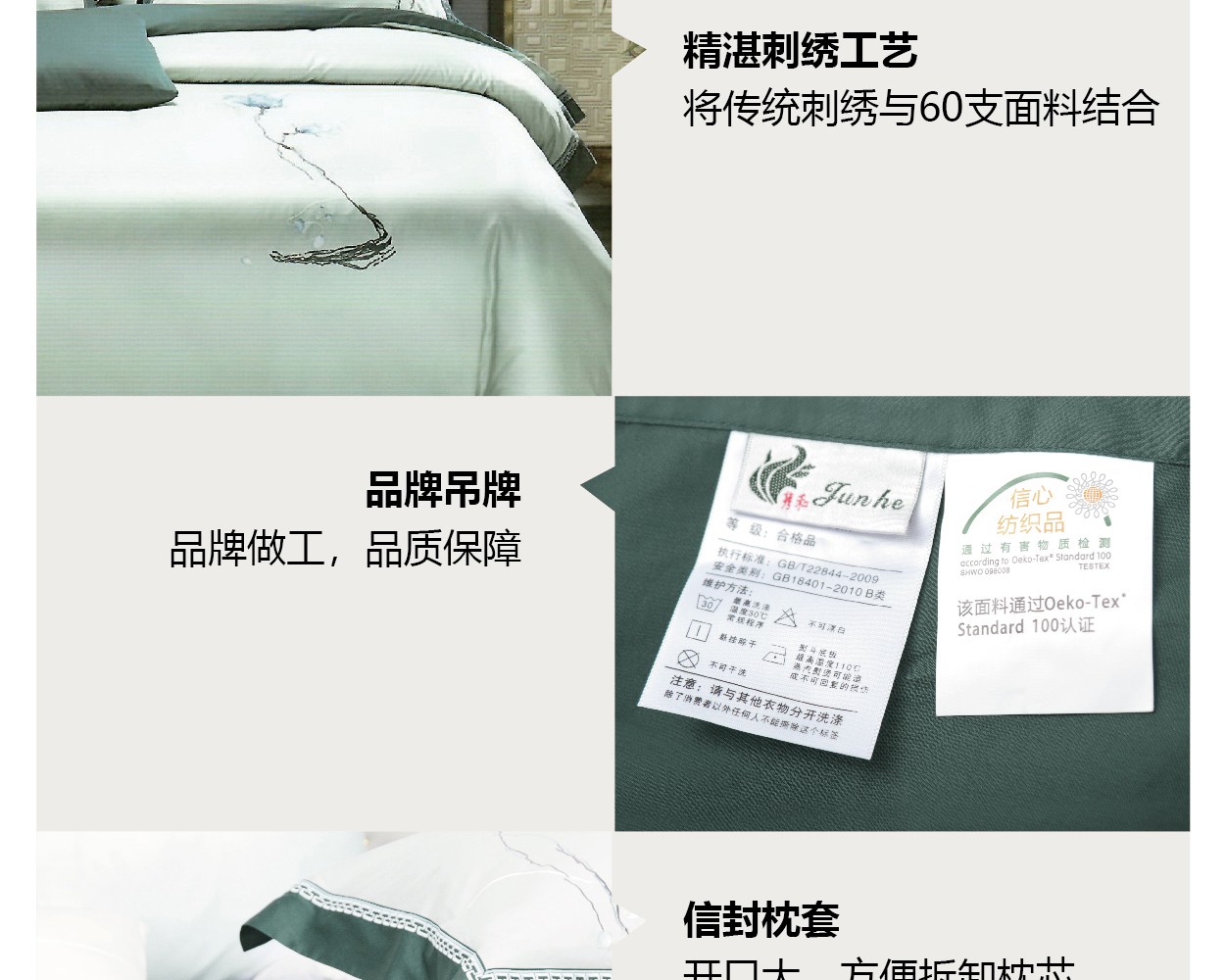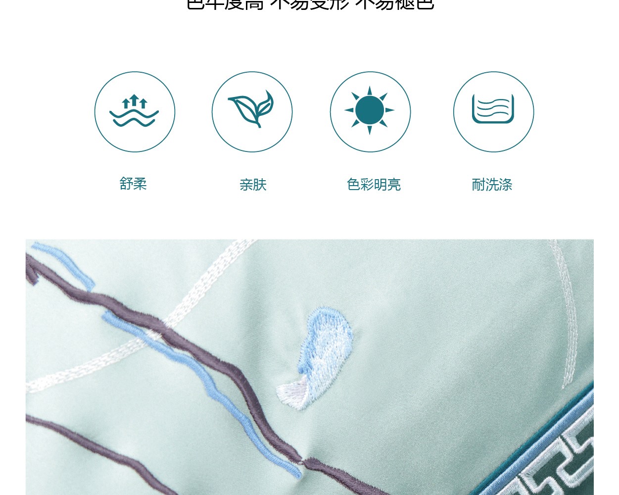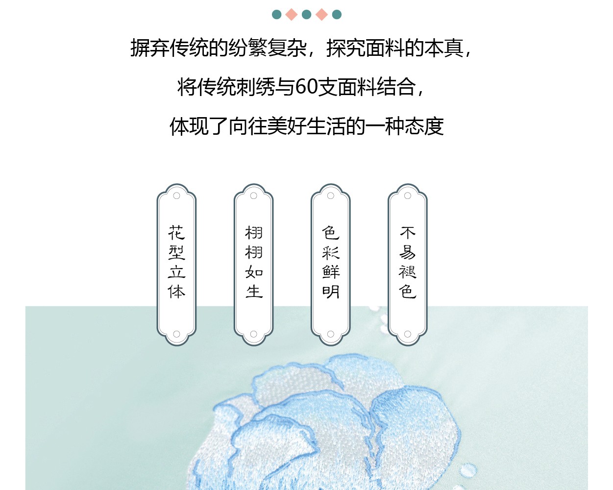 描述:新中式风格,缎纹织造,绣花温馨高雅,舒适亲肤,裸感极致体验