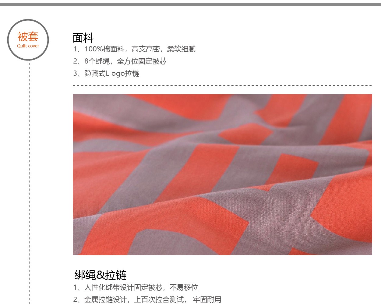 描述:采用新疆长绒棉,环保印染工艺,温馨舒适有格调和品味,布料细腻、柔滑.不脱色,不变形,亲肤性很好