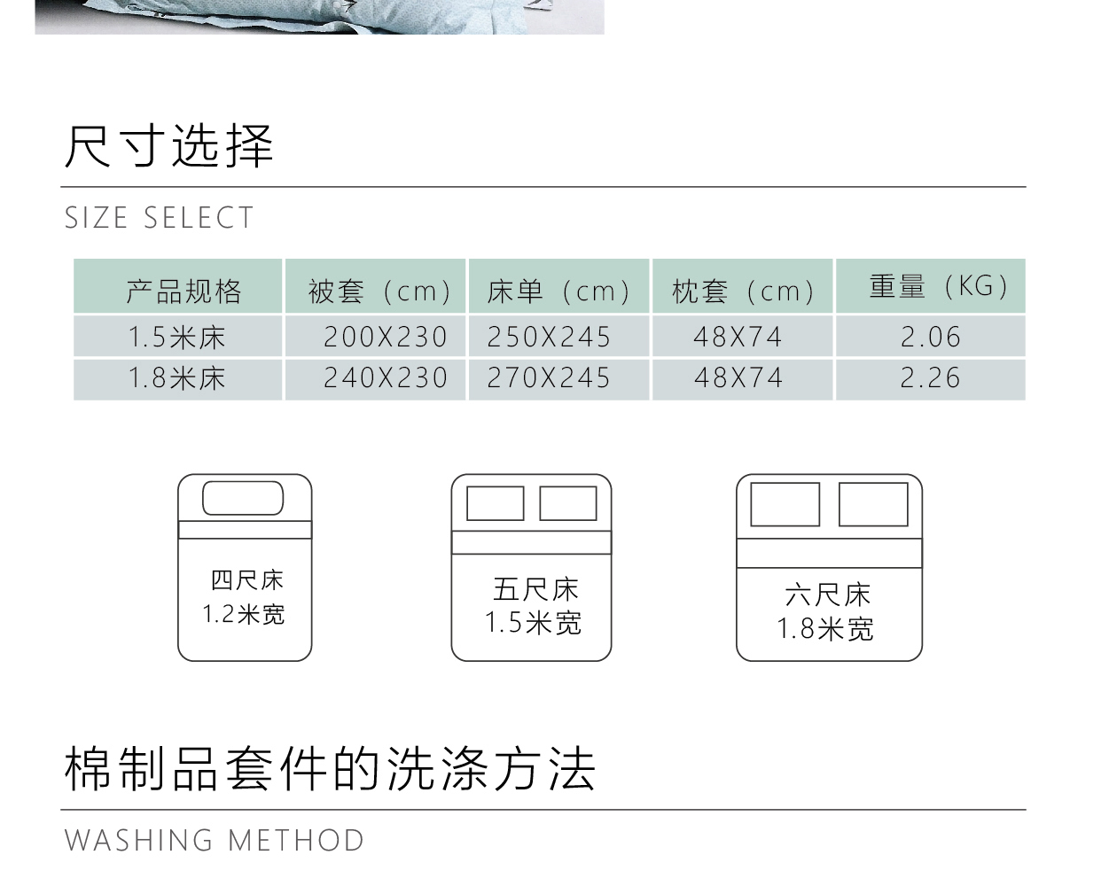产品规格:200*230cm(1.5米床),240*230cm(1.8米床)