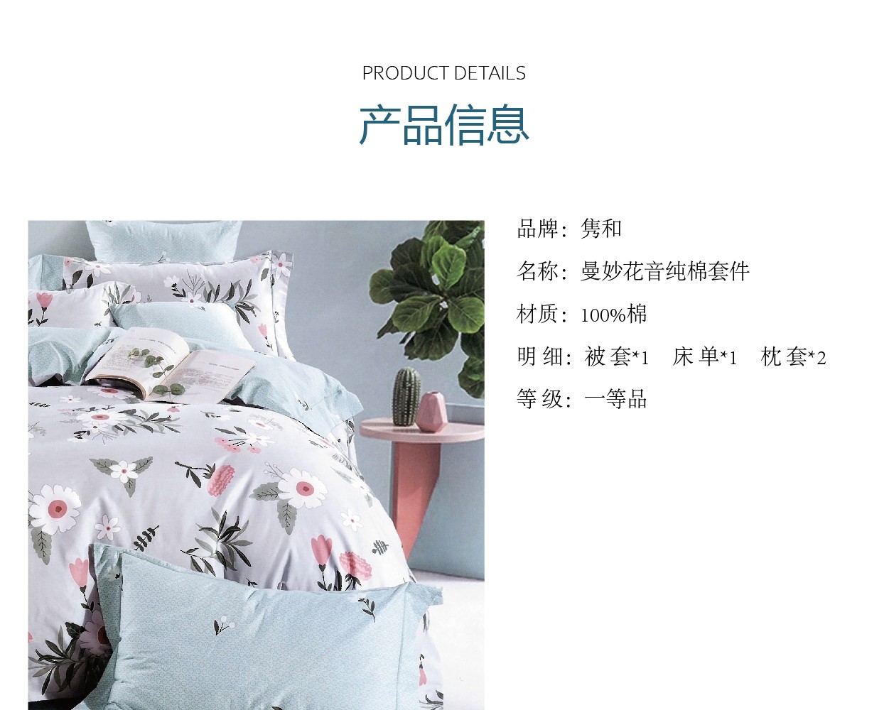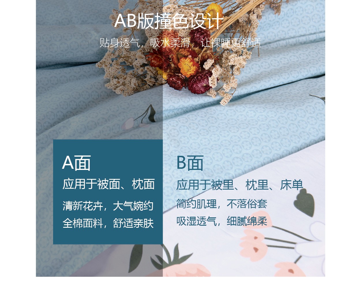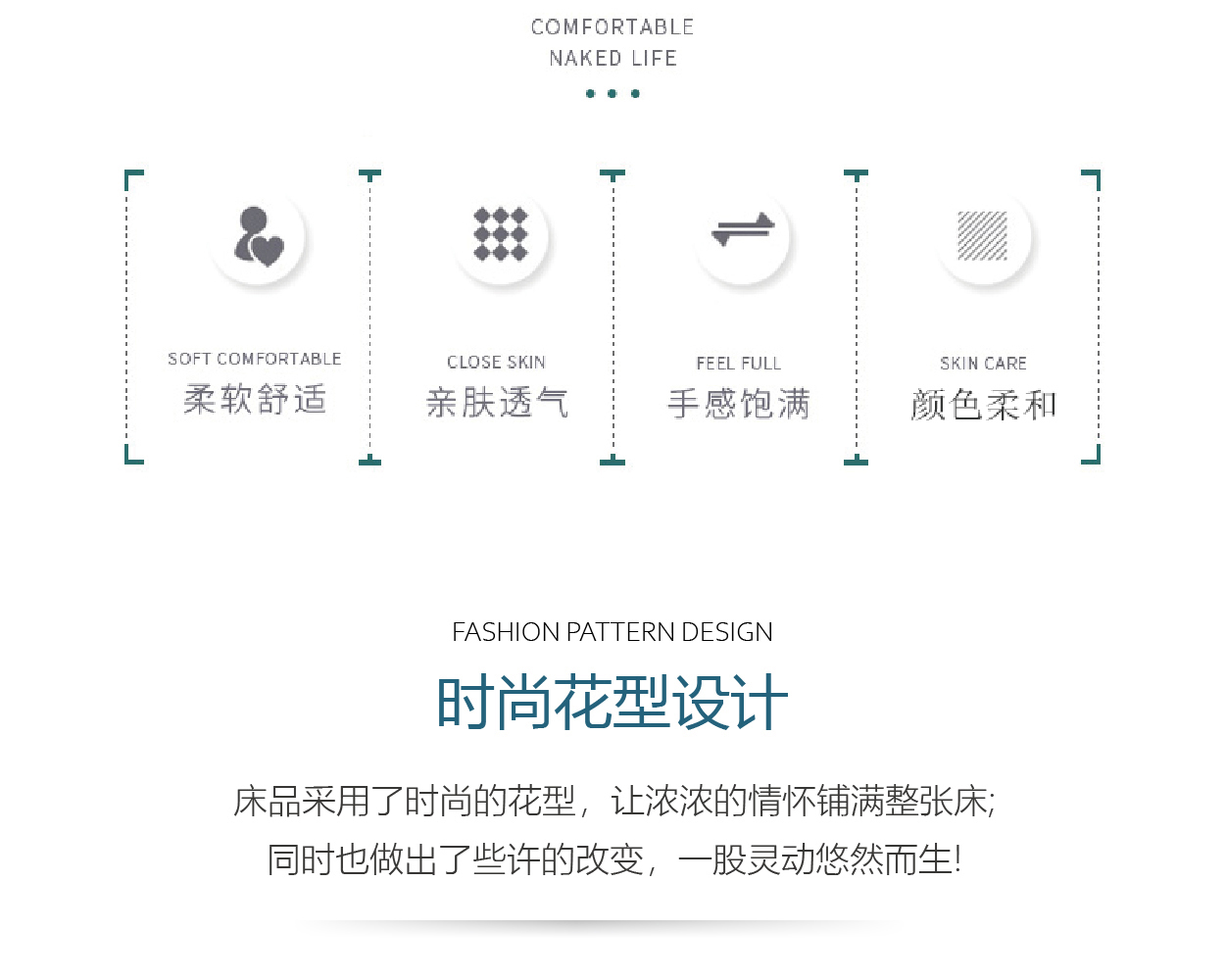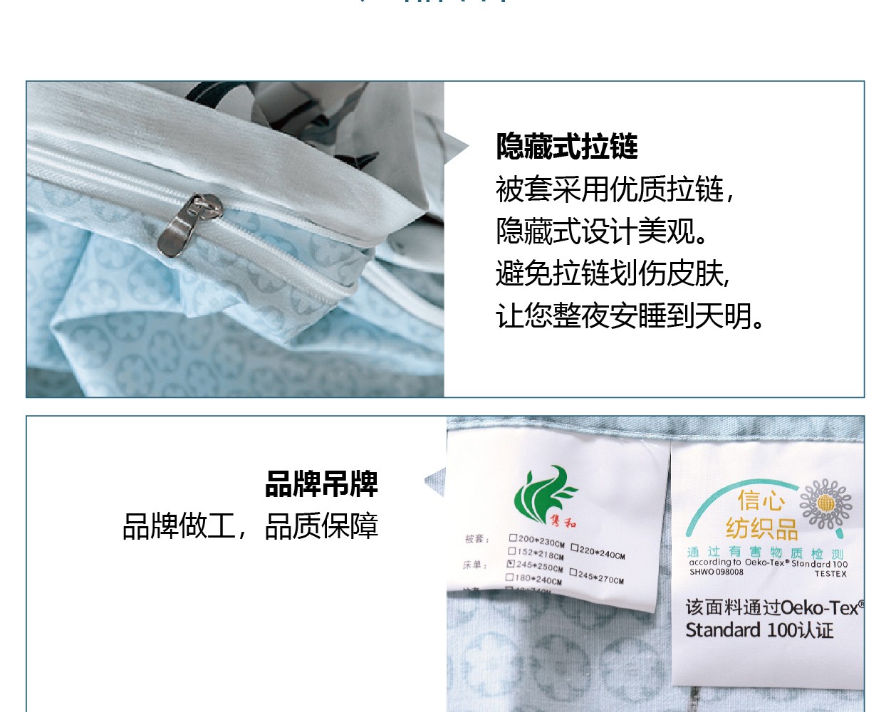描述:全棉面料,吸湿透气,滑爽亲肤,带给您舒适的睡眠体验 织造面料的每一根纤维 选取长度均大于30mm,精梳去除粗纤维,无任何断线起球。