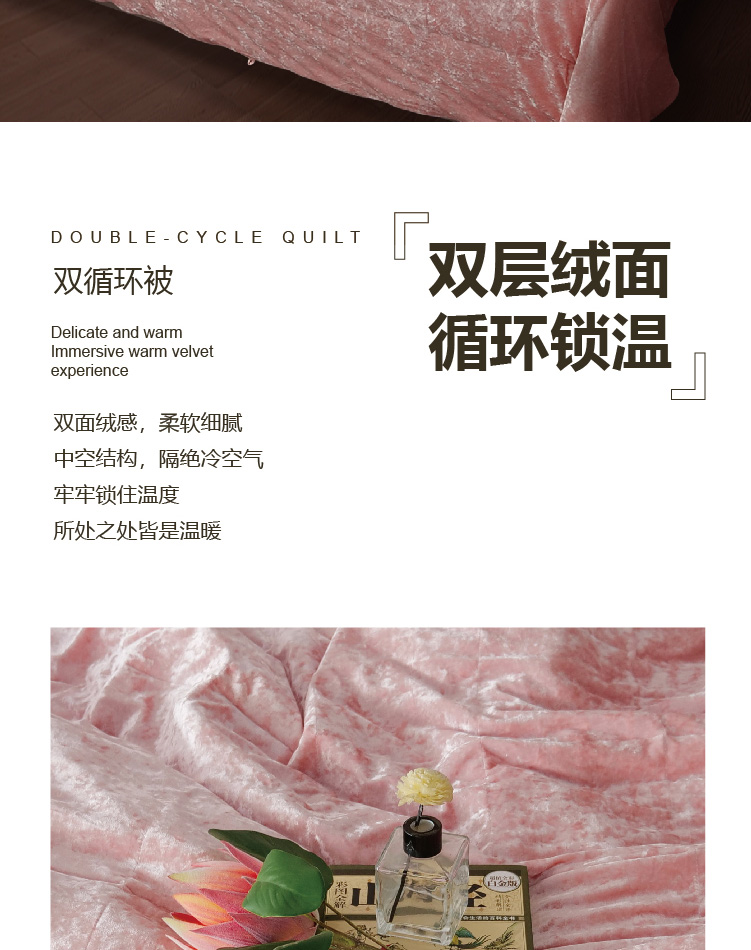 描述:采用双层设计,不压身,完美锁住温度,优质面料柔软亲肤,固定填充不板结不变形。