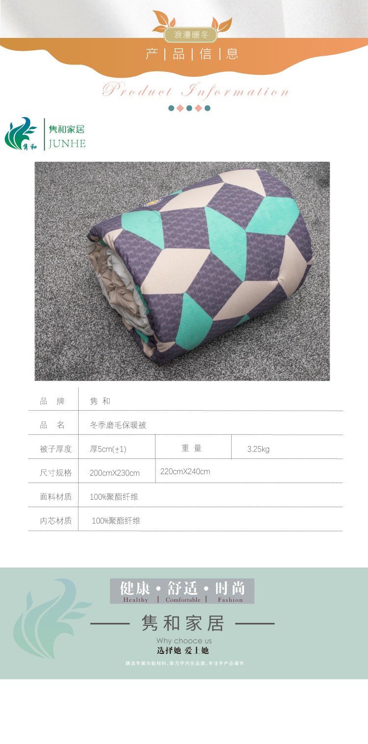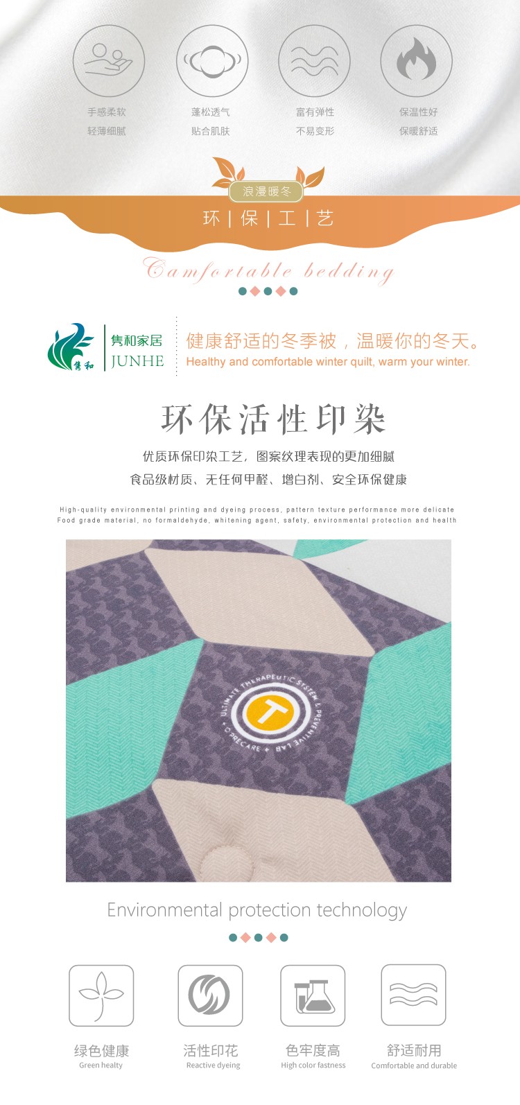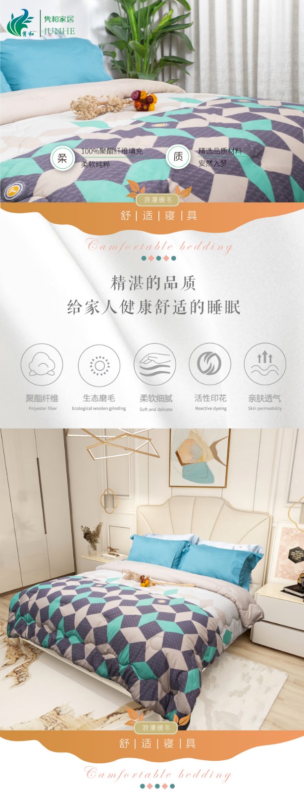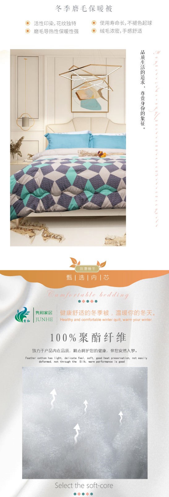描述:100%聚酯纤维棉,大方设计,面料柔软细腻、亲肤透气 优质环保印染工艺,无任何甲醉,增白剂,更健康,跟保暖,更实惠