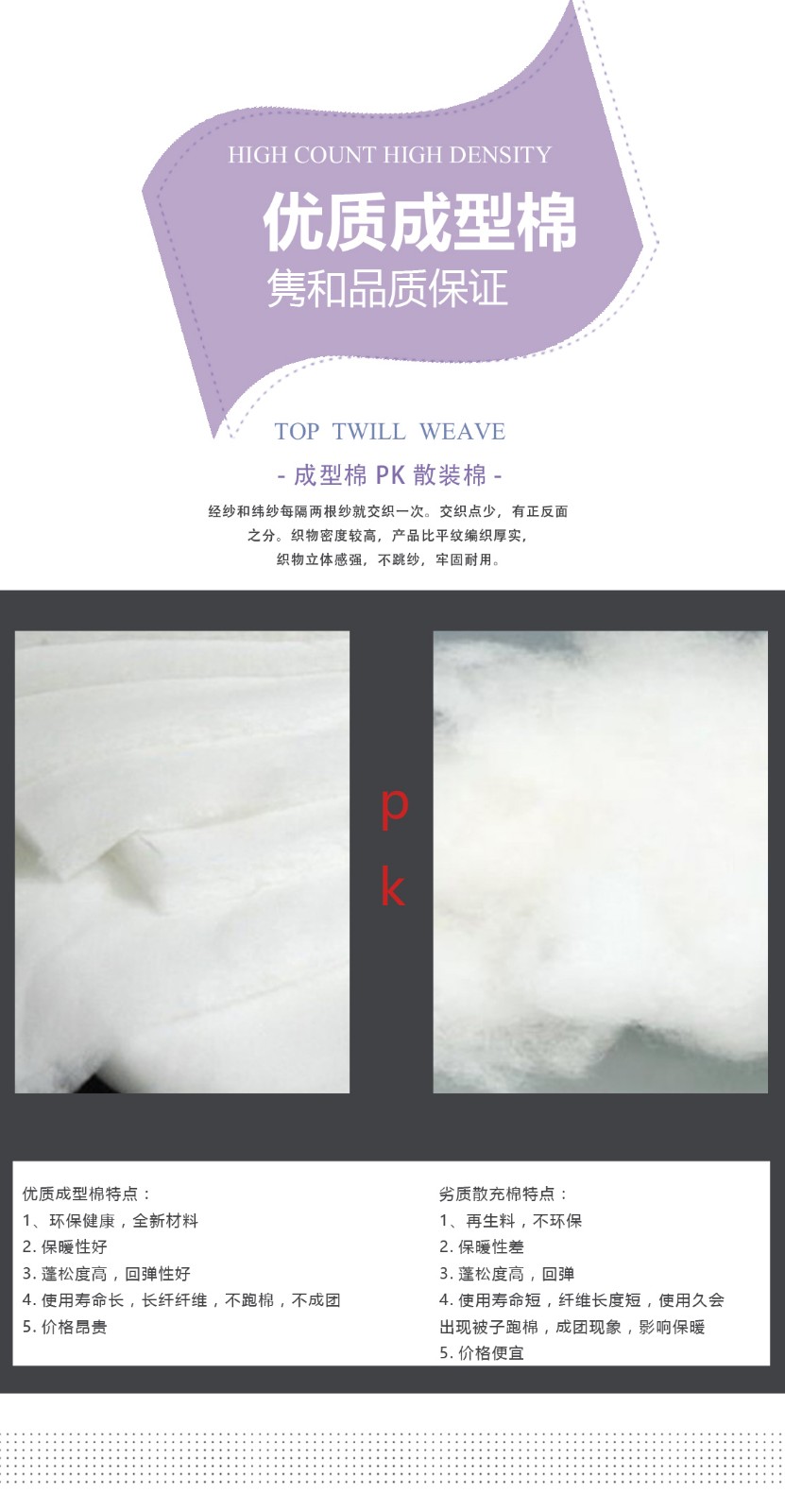 填充物:优质大化成型防羽棉