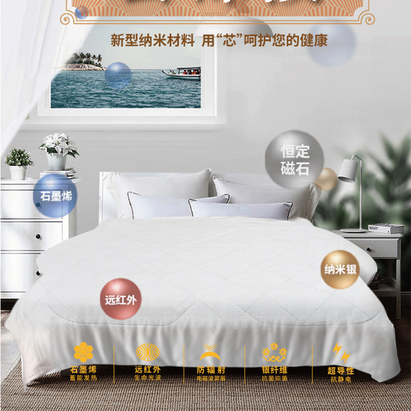 2、健康性:石墨烯加热被子释放的远红外线能够深入人体组织,促进血液循环,缓解肌肉紧张,有助于改善睡眠质量。此外,远红外线还有助于提高免疫力,对抗疲劳。