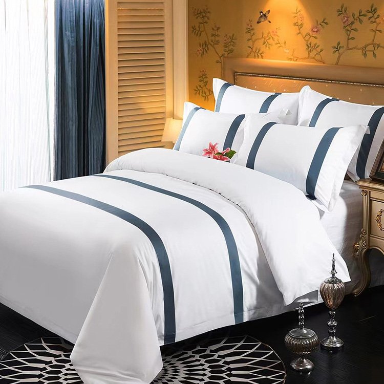 星级酒店纯白条纹三四件套
